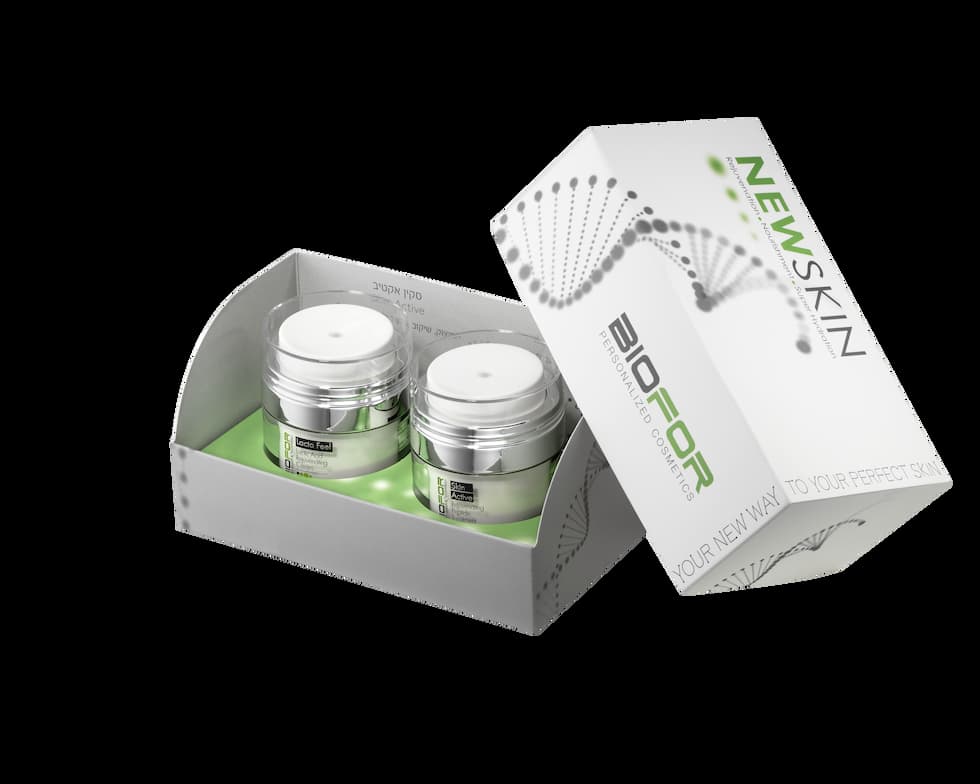 ניו סקין הוא מארז של זוג מוצרים טיפוליים ופעילים. בטיפול פשוט וקליל, התכשירים הללו מעניקים חידוש עור וריענון משמעותי של המרקם, העלאת חילוף החומרים בעור ותרומה למבנה בריא ולח של שכבת ההגנה בעור.