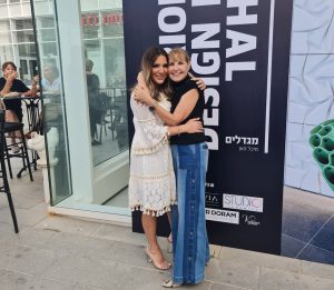 תחיה רובינשטיין מבעלי סטודיו קרמיקה בהשקת ספרה של מיכל האן עם עופרה שמעוני משמאל צילום יהודית סטרובולסקי