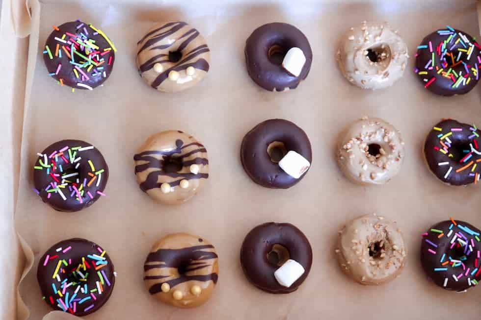 ולהעביר לשקית זילוף. לשמן תבניות דונאטס בתרסיס שמן ולזלף סביב כל עיגול עד 80% מגובה השקעים.