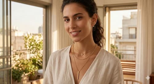 - חוק 3 האורכים: תתחילי עם צ’וקר או שרשרת קצרה מאוד צמודה לצוואר. הוסיפי שרשראות לאישה באורך בינוני (עם או בלי תליון עדין), וסיימי עם שרשרת ארוכה ש”מושכת” את העין למטה ומאריכה את הצוואר.