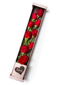 • one love   קופסת ורדים יוקרתית המכילה 9 ורדים אדומים Lovely red. 199 ₪