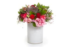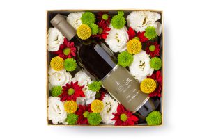 • אלת האהבה – סידור של צבעי אהבה השזור קיטומי ליזיאנטוס, גרברה, ורדי סאשה, צפורן, ורדי Lovely red וענפי קישוט בקופסה לבנה מהודרת עטופה בסרט סאטן. 159 ₪