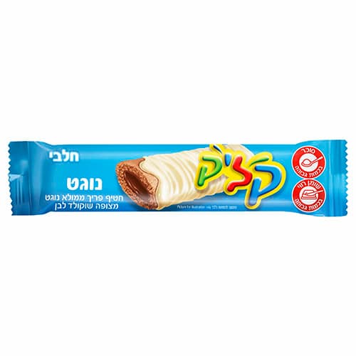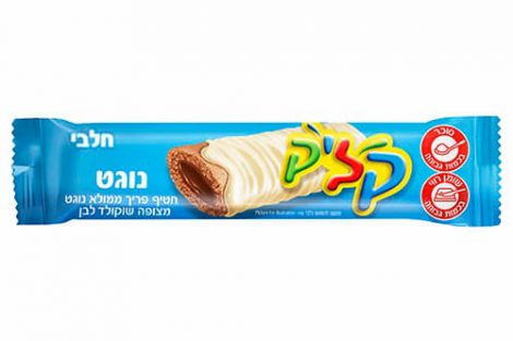 חטיף קליק נוגט בציפוי שוקולד לבן: חטיף פריך ממולא נוגט מצופה שוקולד לבן וקראנצ’י במיוחד