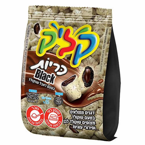 קליק כריות דאבל בלאק בטעם שוקולד ופירורי עוגיות בציפוי שוקולד חלב