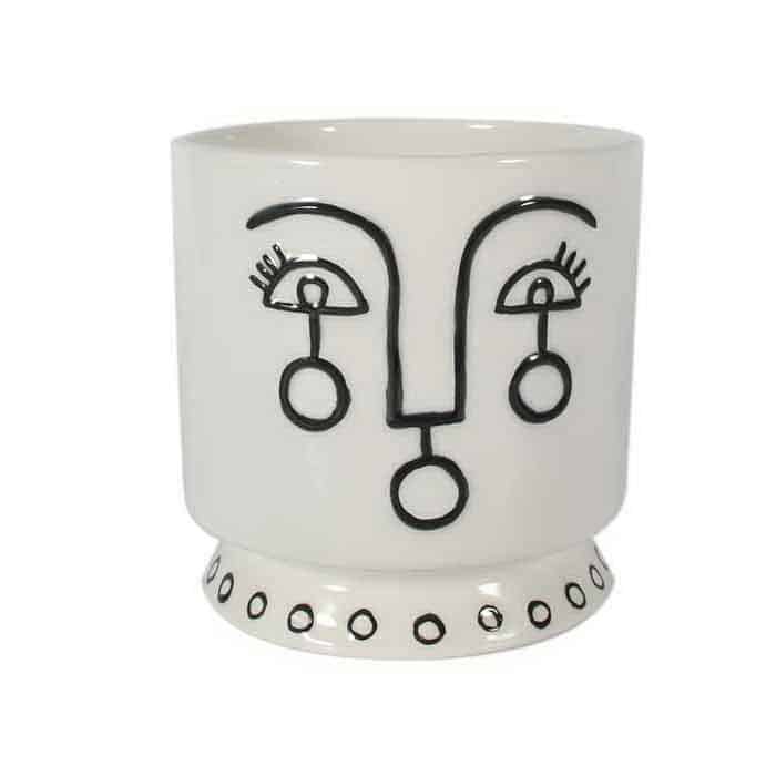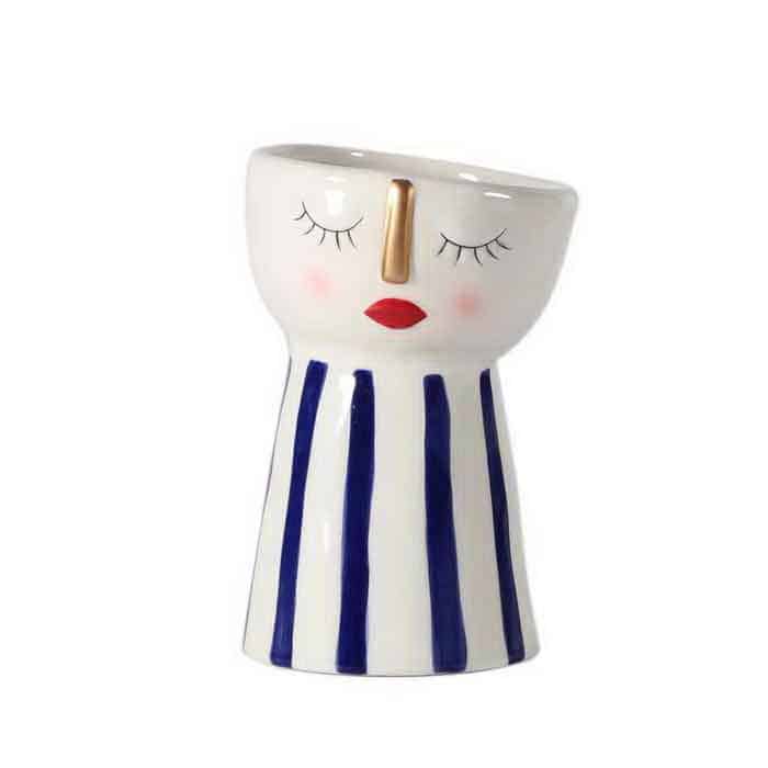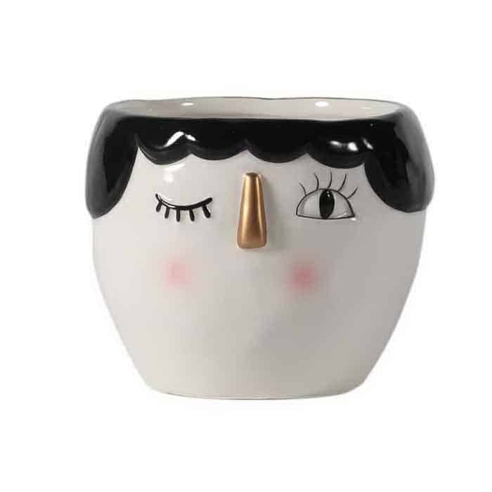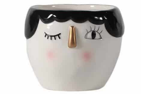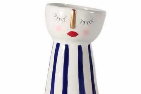 מגוון של כלים לפרחים או לעציצים אופנתיים ומעוצבים במגוון צבעים, מעוטרים במסכות ופרצופים בהשראה הומוריסטית ורישומים אומנותיים, מתאימים למרכז שולחן או ליצירת קומפוזיציה מעניינת.