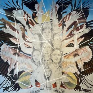 מבין היצירות הגדולות בתערוכה בולטת יצירתה של רויטל אפרת ישראל – עבודה בגודל 2.40 על 2.40 מטרים, עשויה אריחי קרמיקה שבורים שחוברו זה לזה ביד עדינה ובחסד אמנותי. על האריחים מצויר סיפור חיים שלם – 11 פורטרטים של אישה אחת, שבכל אחד מהם ניכרת שכבה שונה של כאב, תקומה, זהות ותשוקה לחיים. העבודה חוקרת את האופן שבו מתוך שבר וצלקת יכולה לצמוח תנועה חדשה – ריקוד פנימי שממריא מתוך הדומם ומתוך החומר הקר – אל עבר החיות, התקווה והלב הפועם.