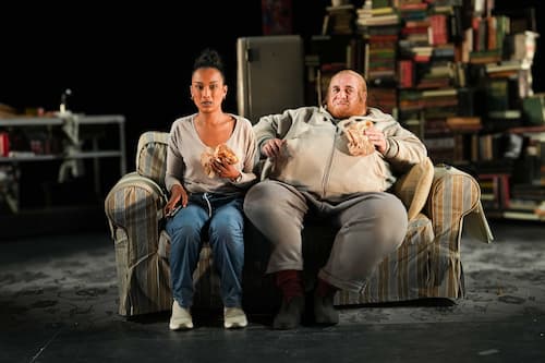 ביצועו של דביר בנדק הוא פלא של טרנספורמציה בימתית. השחקן, המוכר בעיקר מתפקידי קומדיה, חוצה ספקטרום רגשי שלם ויוצר דמות בעלת עומק ואמינות מזעזעת. הוא משנה את קולו, את תנועות גופו, ואפילו את קצב נשימתו, ליצירת אשליה מושלמת של אדם במשקל קיצוני. טכניקה זו משרתת את המהות העמוקה של המחזה – הגוף כהשתקפות של כאב נפשי בלתי נסבל. גם מערכת היחסים המורכבת עם אשתו לשעבר, שמתקשה לסלוח על הנטישה, מקבלת ביטוי עוצמתי. אט-אט מתגלה שאלי, למרות חזותה המרדנית והתנהגותה הפוגענית, מחזיקה בלב רגיש שדרכו צ’ארלי מגלה מחדש את משמעות המשפחה והקשר האנושי.