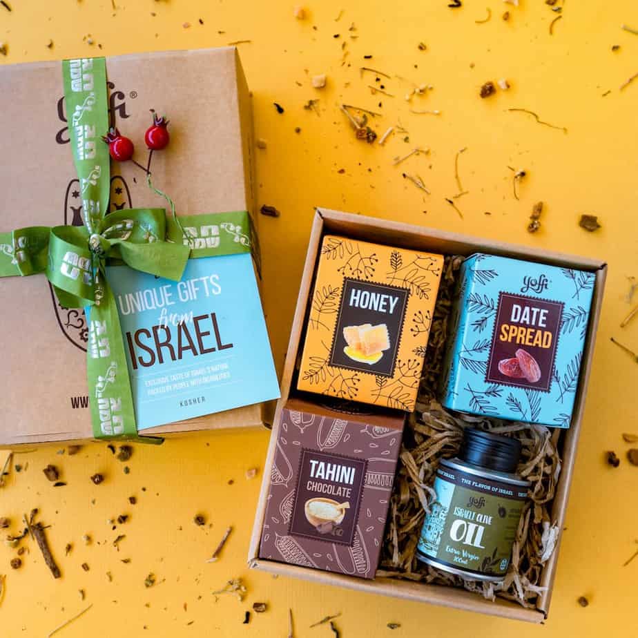 המוצרים במארז: דבש פרחי בר טהור – 250 ג’, שמן זית – 100 מ”ל, טחינה שוקולד – 190 ג’, ממרח תמרים – 250 ג’.