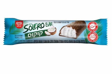סולרו בר קוקוס – גלידת שרבט עם קוקוס בציפוי המכיל שוקולד חלב עם שבבי קוקוס קלויים. מחיר: 7-10 ₪ ליחידה