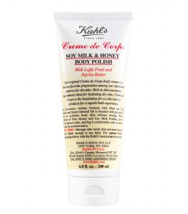 Creme de Corps SOY MILK & HONEY BODY POLISH – קרם גרגרים לגוף – חלב סויה ודבש. עם חמאת חוחובה ופרי הלופה. קרם גרגרים המכיל חמאת חוחובה ושיאה, שמן שקדים בשילוב פרי הלופה ומסייע בפילינג של עור הגוף מבלי לייבשו. עם תוספת של חלבוני חלב סויה ודבש טהורים, קרם הגרגרים שלנו מטפח את העור ומשאיר אותו רך, חלק ומוכן להמשך טיפוח בעזרת קרם לחות.