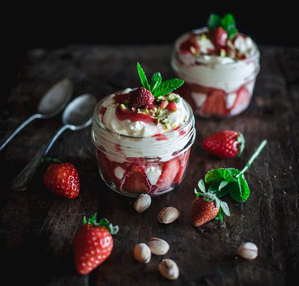 - השכבה העליונה צריכה להיות שכבת קרם. מעליה אפשר לפזר כמה תותים וקצת מילוי. שימו את הכוס במקרר לשעתיים.