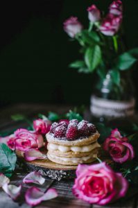 - את השכבה השלישית והעליונה כסו עם כפית שוקולד. פזרו את השוקולד על כל הקרמשניט וקשטו בעזרת פירות יער ואבקת סוכר.