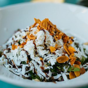 המסעדה מתרכזת בארוחות של בשר ותוספות או דגים ותוספות. הפסטות והלחמים המשובחים נותרו בתפריט וכמובן מנות ילדים עשירה. הפסטות הן עבודת יד שמכינים במקום וניתן להזמין את כל המנות טבעוניות. הבשר הינו בשר טרי באיכות מעולה שנטחן במקום לפי הזמנה. ומבטיח צוות המסעדה מנות טריות, איכותיות וכמובן טעימות במיוחד.האוכל אינו מתוכחם יחד עם זאת טעים, מוגש בצורה יפה על השולחן המנות משביעות. הקוקטלים מרעננים ונותנים ארומה לחך בפרט לימי קיץ חמים.
