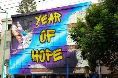 תחת הכותרת “שנה של תקווה”, התאחדו 50 מאמני הגרפיטי המובילים בישראל ליצור מופע אמנותי חד-פעמי ורב-עוצמה. בהובלתו של לירן טפירו, הפכה כל דירה בבניין לקנבס חי, כשהאמנים מציירים את סיפורה של השנה החולפת באמצעות 1,300 פחיות ספריי ו-100 ליטר צבע.