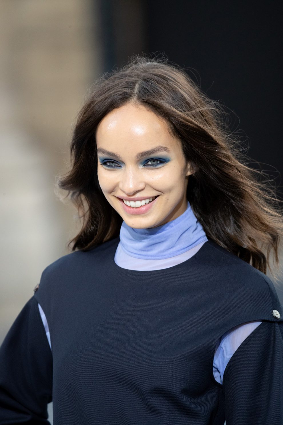 הטרנד: מראה העיניים המעושן והדרמטי מקבל פרשנות עדכנית עם חתימתו של הצבע הכחול-שמיים. קולור בלוק כחול ועצמתי חולש על אזור העיניים עם צלליות כחול-אפרפר המשוחות בעפעפיים.