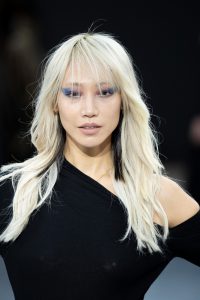 הטרנד: העונה הקרובה מדגישה את שילוב הצבעים הבלתי-שגרתי – סגול עם אדום. עפעפיים בצלליות גליטר בצבע הסגול העוצמתי ממשיכות גם למסגרת העיניים הפנימית, בשילוב איילינר כחול דרמטי ומסקרה כבדה למראה ריסים מוגזם. גבות מודגשות ושפתיים אדומות בגימור מבריק.