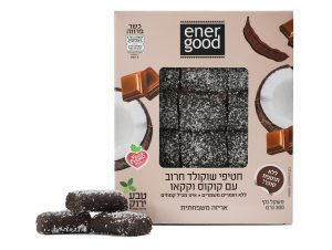 - מרובעי שוקולד, תמר, חרוב, קוקוס וקקאו. מכילים: תמרים (50%), פתיתי קוקוס (35%), אבקת חרובים אורגנית (10%), קקאו אורגני (5%).