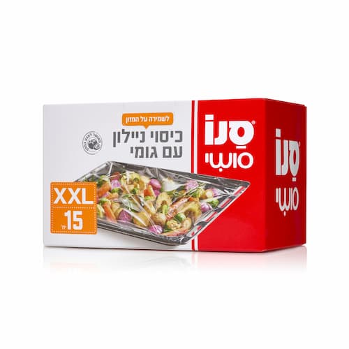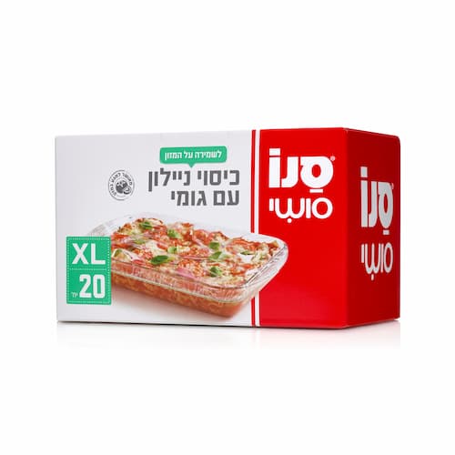 סנו סושי משיקה כיסוי ניילון עם גומי נצמד במידות XL ו- XXL, לכיסוי כלי פיירקס ותבניות תנור לשמירה על המזון בקלות ובנוחות.כיסוי ניילון עם גומי שומר על טריות ואיכות המזון בצורה פשוטה ויעילה. מהיום, ניתן לשמור את המזון הנותר ישירות בתבנית ההכנה המקורית –מבלי להעביר לכלים קטנים.הגומי הנצמד והגמיש של הכיסוי מאפשר התאמה למגוון צורות וגדלים של כלים גדולים ועוטף אותם בצורה אחידה מכל הצדדים, כך שמגן על המזון מחדירת אוויר וחיידקים ומונע פיזור ריחות לא נעימים במקרר.ניתן לשימוש רב פעמי: נוח במיוחד לפתיחה ולכיסוי חוזר.