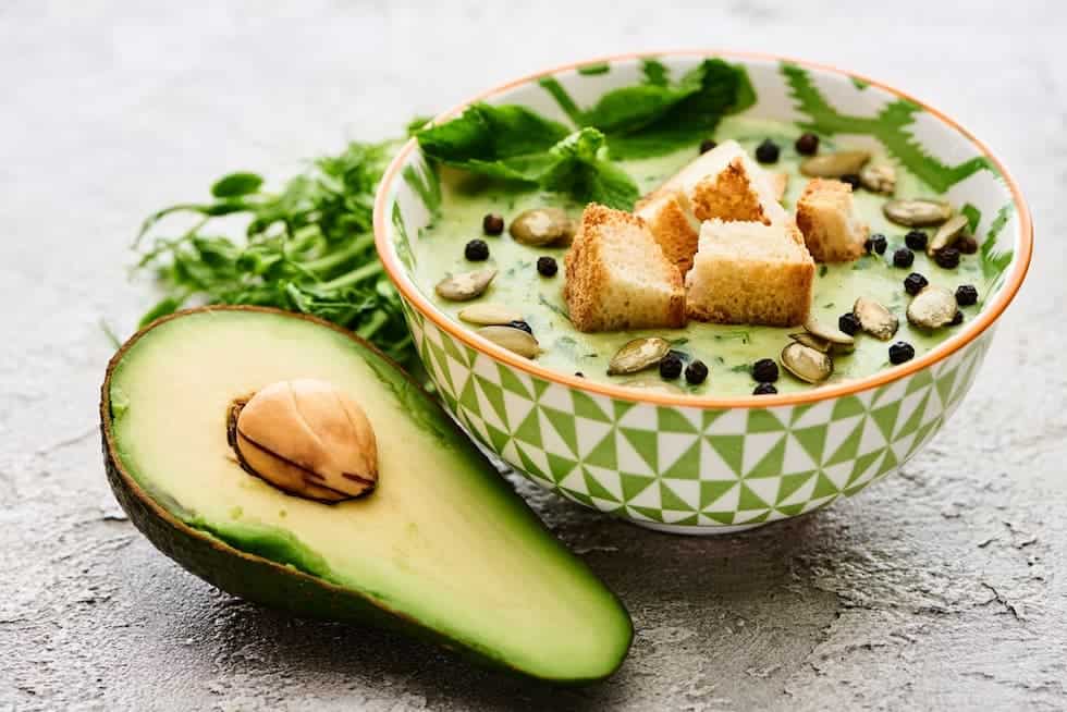 - העבירו את המרק למעבד מזון, הפעילו על מהירות גבוהה והפכו את המרק למחית. הוסיפו את האבוקדו פנימה והפעילו שוב עד לאיחוד האבוקדו והמרק.