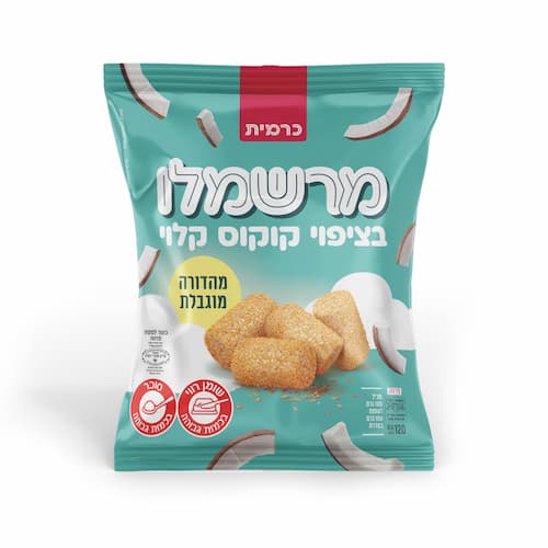 כרמית ממשיכה לחדש עם טעמים חדשניים ומשיקה במיוחד לקראת החורף, מרשמלו מצופה קוקוס קלוי במהדורה מוגבלת. מדובר בטעם ייחודי ובלעדי לכרמית שמצטרף למשפחת המרשמלו הענפה של החברה. המרשמלו המגיע בטעם וניל עטוף במעטפת קראנצ’ית של קוקוס קלוי אשר מעניקה לחטיף האהוב טעם ומרקם מיוחדים שישדרגו כל ביס וביס.המוצר נכלל בקטגוריית ה”סוכריות”.