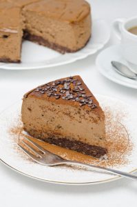 - נמיס את השוקולד ונוסיף אותו בהדרגה לתערובת הגבינה. לאחר שהתערובת אחידה, נשפוך את התערובת על בסיס הביסקוויט ונכניס את העוגה למקרר להתייצבות