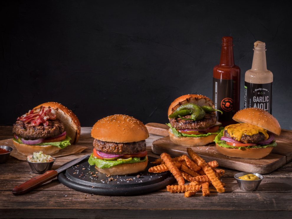 על בסיס הלחמנייה יש להניח חסה, עגבנייה, מלפפון חמוץ ובצל לפי הטעם. מעל מניחים את הקציצה הצלויה. מגישים עם הרטבים מעל או לצד המנה.