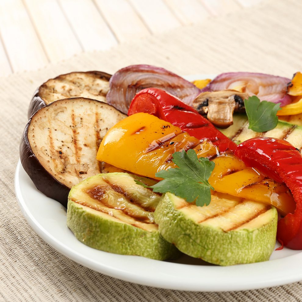 חותכים 2 קישואים, בטטה אחת, חציל אחד ובצל אחד לרצועות עבות. מערבבים בקערה עם 2 כפות שמן זית, מלח גס ופלפל גרוס. אופים בתנור מחומם ל-200 מעלות עד שהירקות כמעט רכים. מזלפים מעל סלט טחינה ואופים עוד 5 דקות.