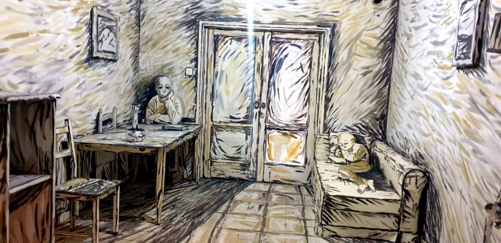 שנכנסתי לבניין הראשון פנקס 11 עליתי לקומה הראשונה נכנסתי לחלל דירה והתחלתי לשוטט בבית תוך כדי התרשמות מהיצירות העוצמתיות שנחשפתי מולן. אם זה בחללי חדרי שינה, מטבח, סלון, שירותים נוכחות האומנות בעלת אמירה ומסר.