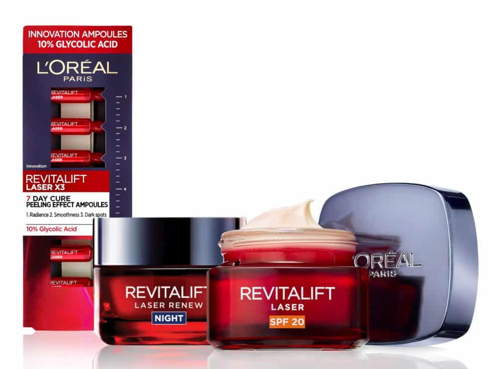 מוצר ראשון – REVITALIFT LASER SPF20– (רויטליפט לייזר קרם מתקדם ליום SPF20): קרם אנטי-אייג’ינג מתקדם לשימוש יומי המכיל מקדם הגנה 20SPF. הפורמולה מכילה 3% + פרו-קסילן מרוכז – פטנט רשום של רכיב אנטי-אייג’ינג פעיל ממעבדות לוריאל פריז בצרפת, להפחתת מראה הקמטים ומיצוק עור הפנים, ורכיב LHA– רכיב פילינג המסייע ביצירת מרקם עור אחיד. בנוסף, הקרם מכיל 20SPF להגנה מפני קרני UVA ו-UVB המסייע במניעת הופעת כתמי פיגמנטציה כתוצאה מחשיפה לשמש.