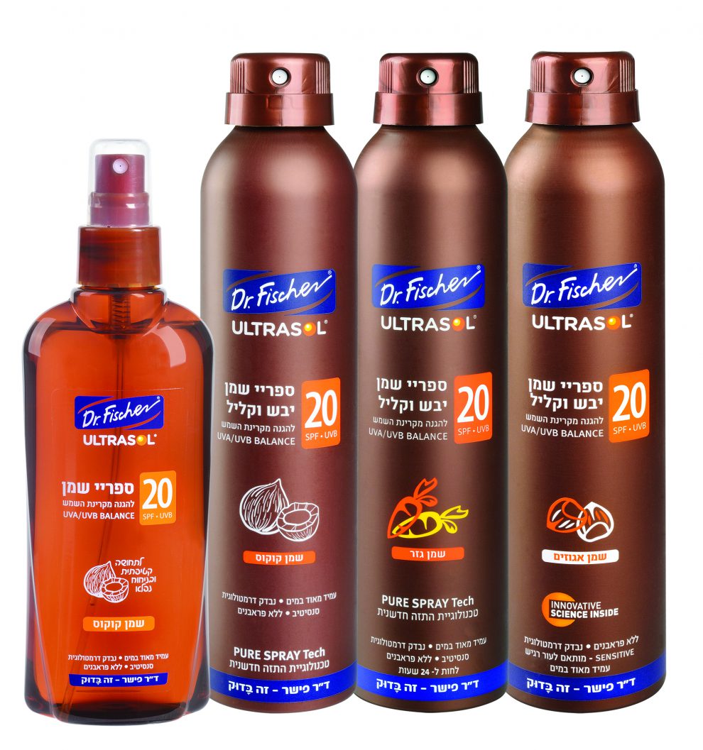 מעבדות ד”ר פישר פיתחו את סדרת אולטרסול ספריי שמן – שמנים בעלי מקדם הגנה SPF20 כדי שתוכלו להנות מעור זוהר ומלא ברק בשילוב עם הגנה מקרני השמש.