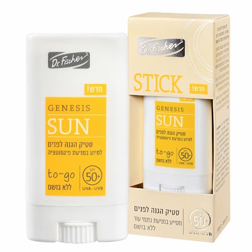 ד”ר פישר משיק סטיק ההגנה לפנים GENESIS SUN הגנה גבוהה (SPF50+) מפני קרני UVA ו-UVB,מניעת פיגמנטציה והזדקנות מוקדמת, מכיל אנטי-אוקסידנטים (ויטמין E ו-Q10),עמיד במים, ללא בושם ופרבנים, מתאים לעור רגיש ומספק לחות ל-24 שעות,מסייע לשמירה על עור בריא, צעיר וקורן לאורך זמן. GENESIS SUN סטיק הגנה לפנים מתאים לשימוש באזורי פנים קטנים ורגישים במיוחד לשמש, מצוין לחידוש מריחה קלה ונוחה במהלך היום.