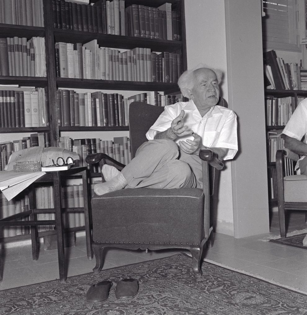 בן גוריון בסלון צילום פאול גולדמן, אוסף גולדמן, מוזיאון ארץ-ישראל