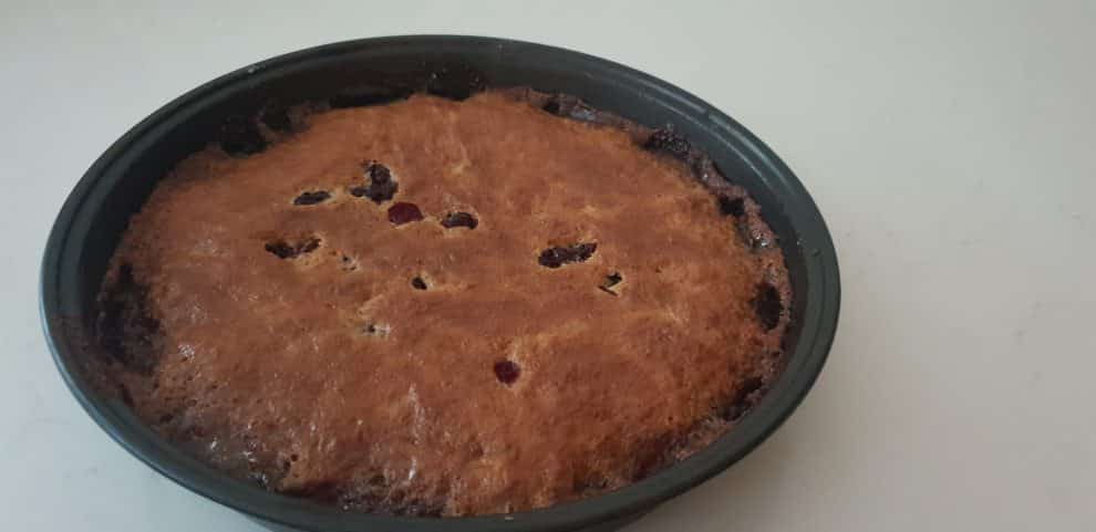 שוטחים על הבצק שנאפה את המלית ומפזרים מעל חמוציות של מיה, אפשרי גם אגוזים
