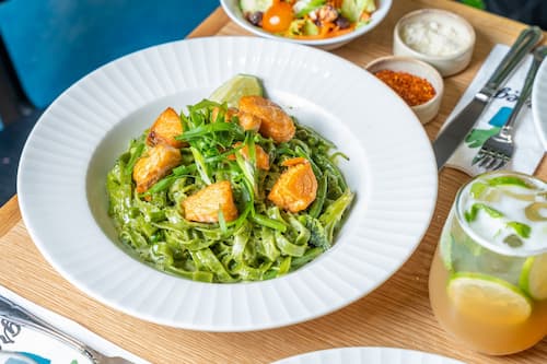 פסטה פטוצ’ני ירוק עם נתחי סלומון
