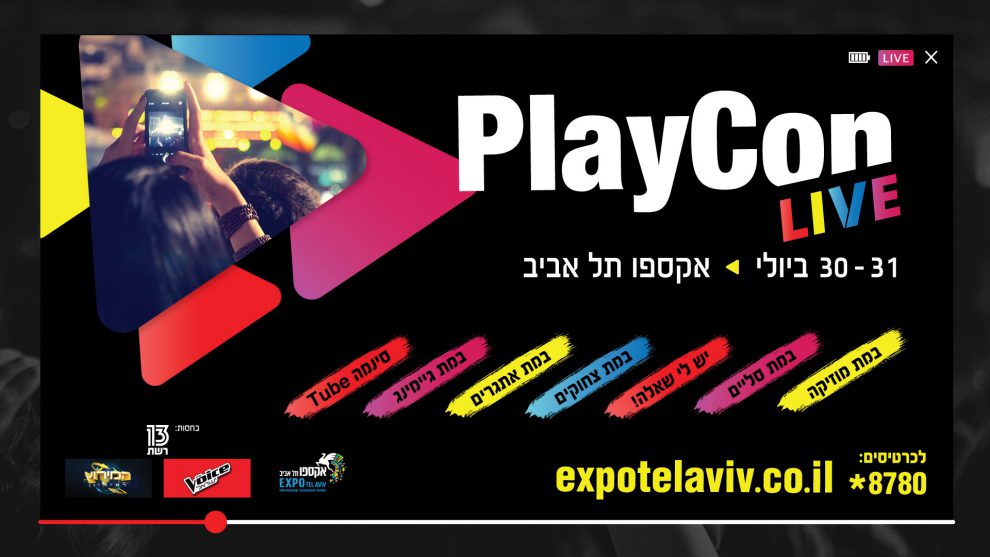 לאור הצלחתו הגדולה בשנים האחרונות, פסטיבל Playcon live, חוזר גם בקיץ הזה לאקספו תל אביב. פסטיבל Playcon live נחשב אירוע מרכזי ומוביל בתחומו וכן כל משפיען רשת או יוטיובר מקומי שמעוניין לקבל הכרה, יודע שהדרך להתמקצע ולהפוך לפופולרי בתעשייה הזו, עוברת ב-Playcon live.