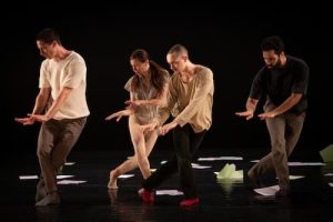 גם הטקסטים מדברים את אותה השפה של המחול עצמו, אותה גם הפסקול מדבר.חלק מהפסקול הוא קריינות של טקסט מגומגם כמו אינסופי, שמרגיש כל כך אקראי, ופליאה בהבנה שהטקסט הזה שונן כשהוא לאחר מכן מדובר ע”י אחד הרקדנים, ומקבל פתאום יותר היגיון כשמלוות אותו תנועות ומשחק. כצופה אתה מנסה למצוא תבניות של התנהגות אנושית, ותוהה כמה אפשר להיות לא צפוי ולהפתיע אותך ברגע הבא.