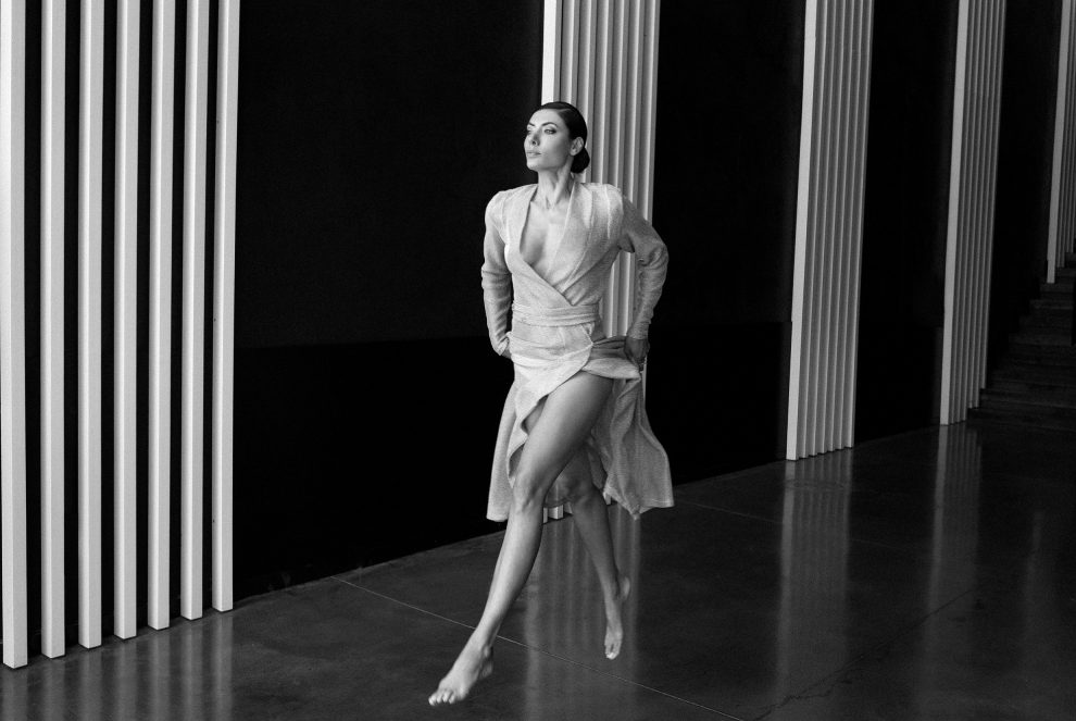 הקו העיצובי של אהרון הוא כזה שמתרכז בחומרי גלם איכותיים ויצירתיים ולא מתפשר על האיכות הבד בשמלה.