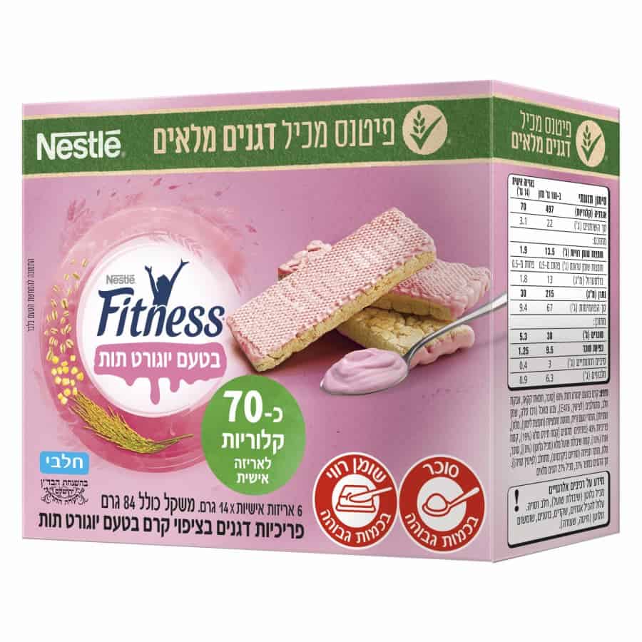 סדרת פריכיות השוקולד של Fitness פריכית דקה ונימוחה, מצופה בשוקולד חלב או לבן, טעימה ומפנקת הארוזה באריזות אישיות של זוג פריכיות, מוצר במראה מפתיע בציפוי קרם ורוד בטעם יוגורט-תות מפנק. מדובר בשילוב טעמים נהדר אשר זכה לציונים גבוהים במבחני הטעימה בקרב הצרכנים.