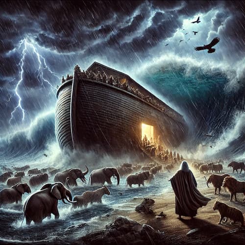 הקב”ה נתן הזדמנות אחרונה לרשעים לחזור בתשובה: התחיל לרדת גשם קל, אך משלא התחרטו על מעשיהם התחיל המבול: פרצו מעיינות מתוך האדמה וגשם עז ירד משמיים. במשך ארבעים יום וארבעים לילה ירדו גשמים ללא הפסקה: “בִּשְׁנַת שֵׁשׁ־מֵאוֹת שָׁנָה לְחַיֵּי־נֹחַ בַּחֹדֶשׁ הַשֵּׁנִי בְּשִׁבְעָה־עָשָׂר יוֹם לַחֹדֶשׁ בַּיּוֹם הַזֶּה נִבְקְעוּ כָּל־מַעְיְנֹת תְּהוֹם רַבָּה וַאֲרֻבֹּת הַשָּׁמַיִם נִפְתָּחוּ׃ וַיְהִי הַגֶּשֶׁם עַל־הָאָרֶץ אַרְבָּעִים יוֹם וְאַרְבָּעִים לָיְלָה׃”. כמובן, שהרשעים ניסו למנוע זאת ואף ניסו לשבור את התיבה, אך הקב”ה שלח אריות ודובים שיקיפו את התיבה ויגנו עליה: “וְהַבָּאִים זָכָר וּנְקֵבָה מִכָּל־בָּשָׂר בָּאוּ כַּאֲשֶׁר צִוָּה אֹתוֹ אֱלֹהִים וַיִּסְגֹּר יְהוָה בַּעֲדוֹ׃”.
