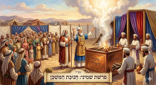 ב-א’ בניסן הגיע היום השמיני בו פנה הקב”ה אל משה והודיע לו שמעתה הוא לא יעבוד במשכן, אלא הוא ימנה את אחיו אהרון ובניו להיות כוהנים במשכן. משה העביר את תפקיד הכהונה לאהרון ובניו אל מול כל בני ישראל כדי להראות שזה נעשה על פי ציווי של הקב”ה ולא מתוך מינוי מקורבים. כך התמנה אהרון להיות לכהן גדול ובניו לכהנים במשכן.