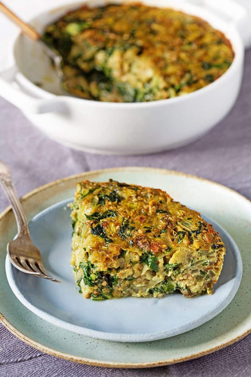 משמנים תבנית אפייה בתרסיס שמן. מעבירים לתוכה את התערובת, ואופים בתנור החם 25-30 דקות, עד שהפשטידה מתייצבת ומשחימה.