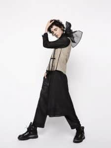 מלבד שחור ולבן, הצבעוניות המינימליסטית כוללת גוונים כהים ועמוקים של כחול, ירוק זית וחום עם הבלחות של קרמל ובז’ זהוב. הקולקציה כוללת אריגי טאפט פיסוליים ומבריקים, שיפון משי, דמויי עור ואריגי קופרו נשפכים, סריגים חמים במרקמים עשירים ואריגי כותנה רכים.