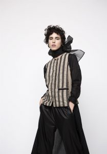 בין פריטי המפתח בקולקציה: מעיל טאפט חום-אספרסו ארוך בווליום מרשים, חצאית קווילט דו צדדית מאריג טכני מבריק שחור ואריג נקודות שחור לבן , מכנס מאריג קופרו נשפך ומבריק בצבע חום קרמלי עם חגורת קשירה, וחולצת מעטפת רומנטית עם קשירה בצוואר ובמותן שניתן ללבוש גם פתוחה, עשויה משי עם שרוולים רחבים, בצבע שחור אטום או שמנת שקוף. הבגדים בקולקציה משרתים אישיות ולא אירוע או יום מסוים. בשילוב הנכון, הפריטים מתאימים ליום או לערב, לעבודה או לאירוע.