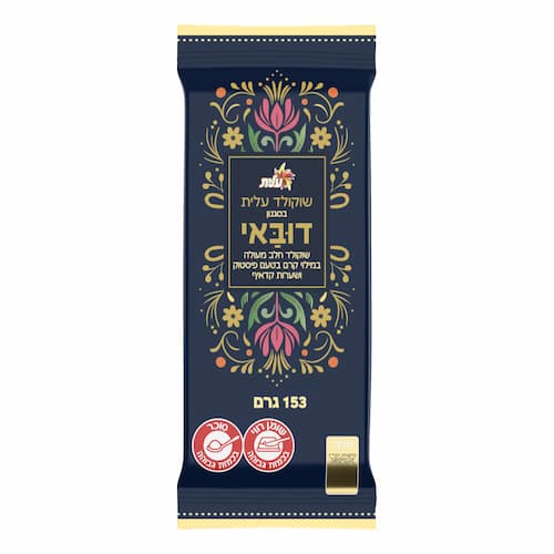 נסיינית המערכת: שוקולד דובאי נולד כקינוח מזרח־תיכוני צבעוני וכבש את עולם השוקולד עם שילובים מפתיעים של מתוק ומלוח, וכעת, בפיתוח מקומי, נוצרה פרשנות ישראלית נגישה שמתאימה לכל בית. טבלת השוקולד מגיעה בעיצוב ייחודי, בהשראת סגנון אוריינטלי, עם שלוש עטיפות שונות לבחירה בנראות מרשימה .הטעם מאוזן עם מרקמים מגוונים קרמי, אגוזי ופריך שמייצרים חוויה סנסורית ייחודית, בהשראת קינוחים של דובאי.