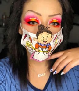 האחרונה החליטה לעשות צחוק מהנגיף: לצייר על המסכה, להדביק תוספות ולהתקשט באיפור עיניים מותאם נושא.