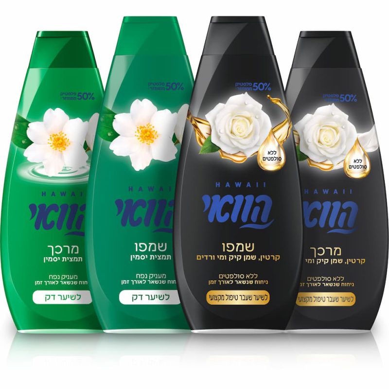 הוואי שמפו ומרכך תמצית יסמין מעניק נפח שמפו ומרכך תמצית יסמין מעניק נפח לשיער דק ונשמר עד 48 שעות מהשורש לקצוות. הפורמולה מועשרת תמצית יסמין, למראה שיער בריא, מלא נפח עם ניחוח שנשאר לאורך זמן.