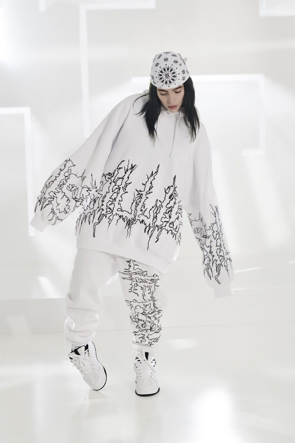 כל אחד מהמראות מאופיין במראה שונה וייחודי, במראה יוניסקס וגווני צבע עוצמתיים – טוטאל לוק לוק לבן, שחור, ירוק או כתום. קפוצ’ון לבן ומכנסי ג’וגר בשילוב דפוסים והדפסים ייחודיים של בילי איליש, בעוד הסט השחור מאופיין בשילוב כיתובים עם שמה של האומנית בשילוב אבני חן נוצצות.