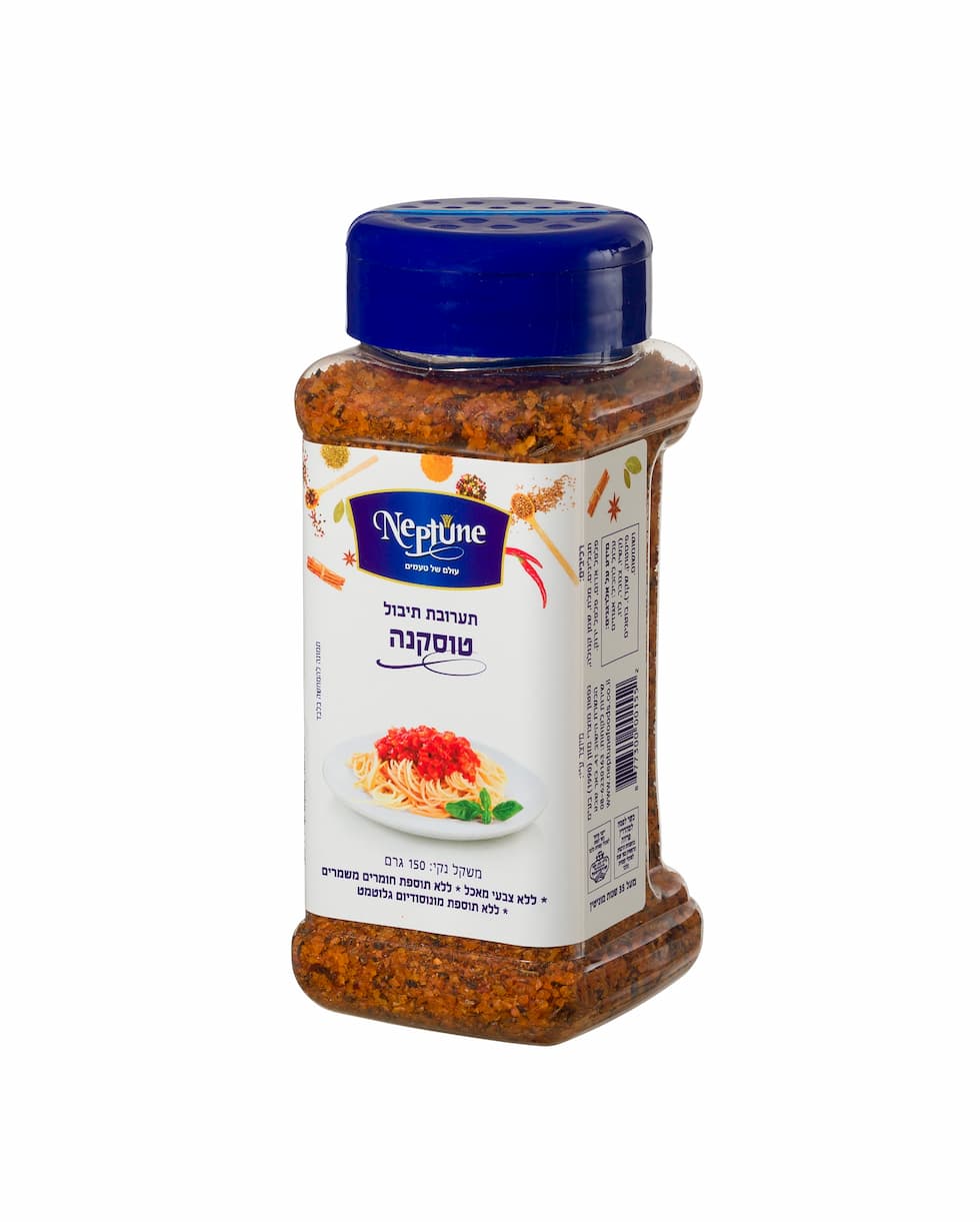 תערובת “טוסקנה”: תערובת תבלינים מיוחדת להכנת סוגים מגוונים של מנות ובהן עוף, בשר, דגים, פסטה, תפוחי אדמה, אורז, קינואה ועוד. התערובת כוללת, בין השאר, שמן, שום גבישי, פפריקה מתוקה, רוזמרין, מלח ים ועוד.