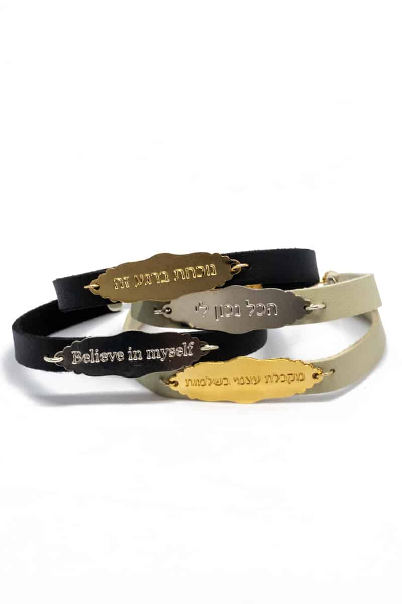 3. צמיד דמוי עור דגם ‘מסר בפתק’ עם מילים וביטויים מעצימים ומחזקים. מחיר 120 ₪