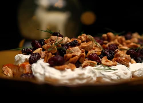 - הרכבה והגשה: מוציאים את הסלמון מהתנור. מכסים אותו ברוטב היוגורט הטבעוני ומפזרים מלמעלה את החמוציות והשקדים הקצוצים, ומעטרים בגרעיני רימון ועוד שמיר או פטרוזיליה.